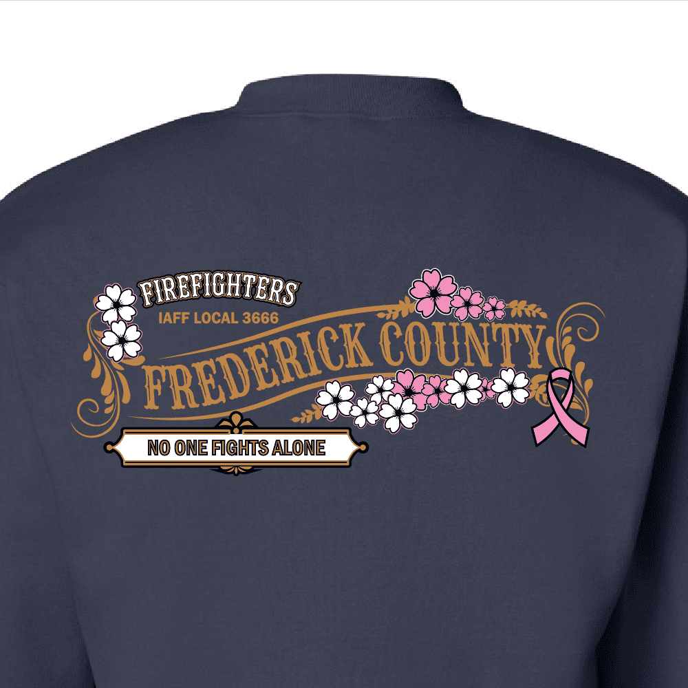 Career Firefighters Association of Frederick County, MD Local 3666 is proud to launch their annual Breast Cancer fundraiser. $10 of every item sold will be reserved for donation after the fundraiser has been completed. Pre-order now through 9/30. Production will begin on the project and will be completed within 2-3 weeks after the close of the fundraiser.